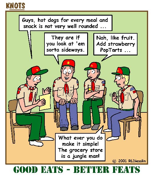 Copyright © 2008 Richard Diesslin, cartoonist of the KNOTS or Not Scouting Cartoons! Used by permission. This image may not be used or reproduced in any form without the expressed written permission of the owner.  Permission is usually granted for local troop/pack hardcopy newsletter use, but you need to ask (it's free)! Also, print resolution images (color and black-and-white) and permissions are available with purchase of the KNOTS or Not Scouting Cartoon CD! or one of the supplements. Thank you for your interest in KNOTS cartoons. Rich's main web site is at www.the-cartoonist.com.